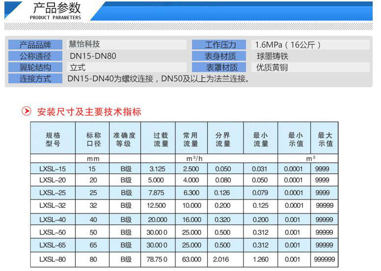 立式机械水表计数器有C型、E型、干式和液封供不同客户选择。该水表要求立式垂直安装,水流方向:上进下出;可作分表,安装方便。选用优质材料,性能稳定可靠,外观漂亮。注:该系列水表技术参数符合国际标准。有热水表、高温水表、有铜壳、铁壳、不锈钢壳可供客户选择。