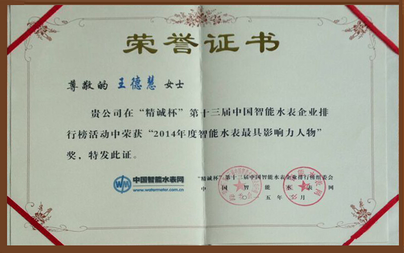领导,是指能够影响他人,使其努力共同达成群体目标的人物。北京慧怡科技有限责任公司的王德慧总经理拥有近三十年的销售及管理经验,一向精明干练,高瞻远瞩,雷厉风行,具有高度影响力的演讲总是能够在员工和客户心中留下深刻印象。第十二届智能水表排行榜大会中,慧怡公司的王德慧总经理获得了“最具影响力人物”称号,今年的第十三届智能水表排行榜大会上,北京慧怡科技王总经理又一次众望所归,被组委会尊选为中国智能水表企业最具影响力人物,慧怡的员工也正是在鲍总和王总的领导和影响下,共同努力完成公司一个又一个目标,一步步靠近水表行业巅峰的。