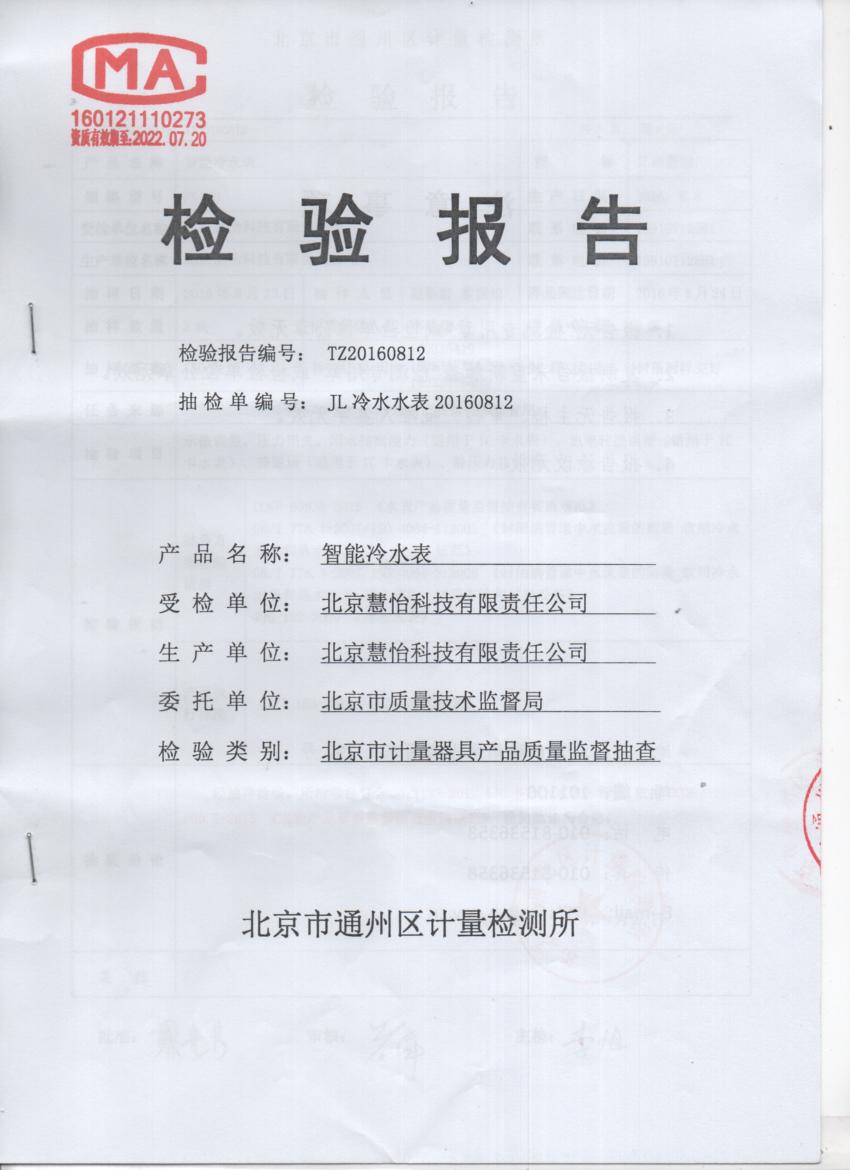 近日,北京市质量技术监督局对北京慧怡科技有限责任公司进行抽查监督,经过严格的审查检测,我公司产品IC卡智能冷水表均顺利通过检测,全部检测产品均抽查合格!
