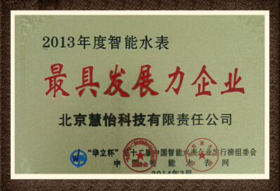 恭喜慧怡连续8年获得智能水表行业最具发展力企业。2013年,中国智能水表企业排行榜揭榜大会及技术与市场发展论坛圆满召开。在海外海国际会展中心开幕,为期3天的展会来自全国知名仪表企业参展及会议论坛报名,包括宁波精诚、浙江苍南、德力西、人民电器、重庆融焕电器、河北天诺、杭州百富等众多知名企业参展。